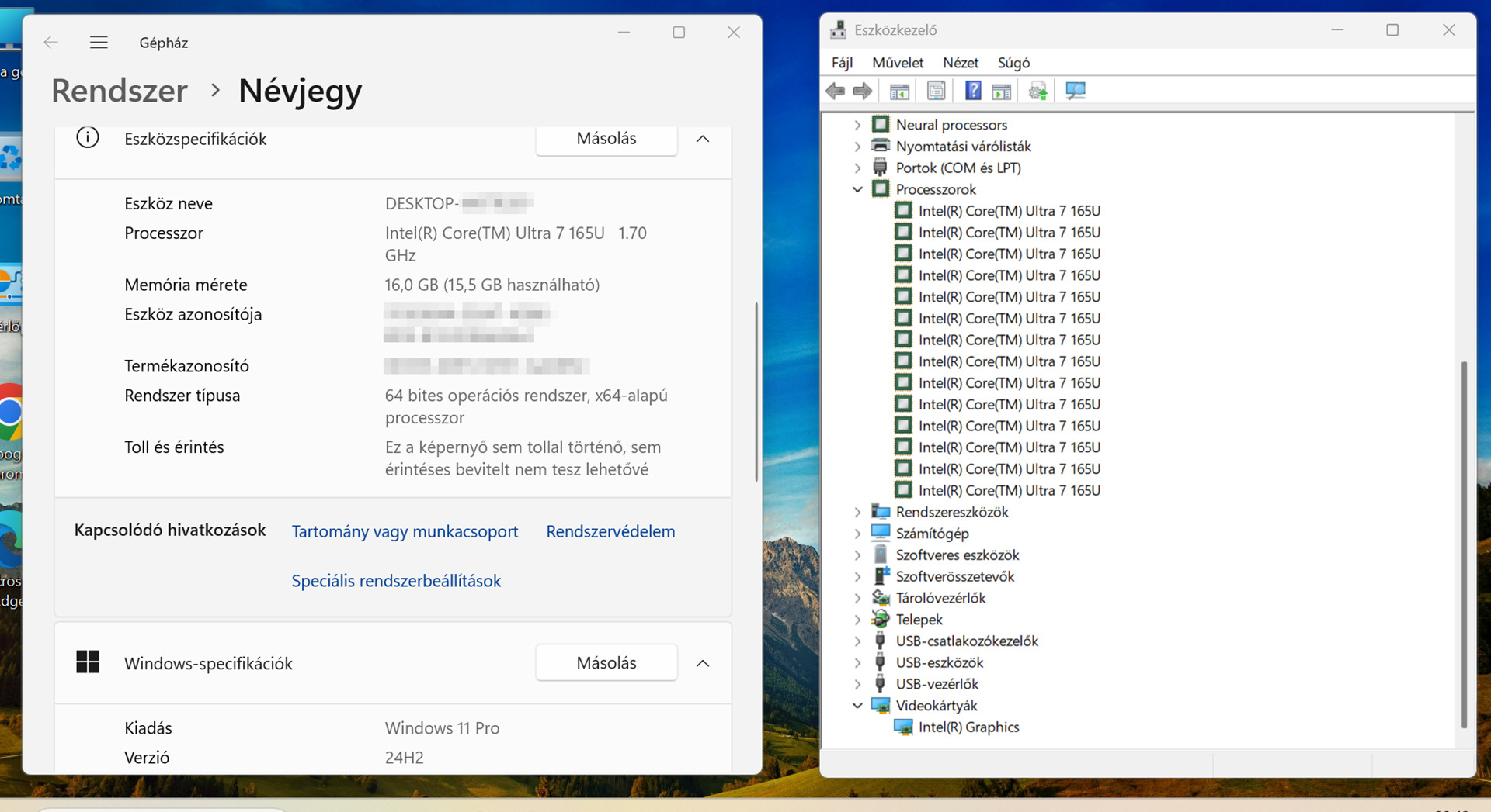 - Videókártya: Intel Graphics