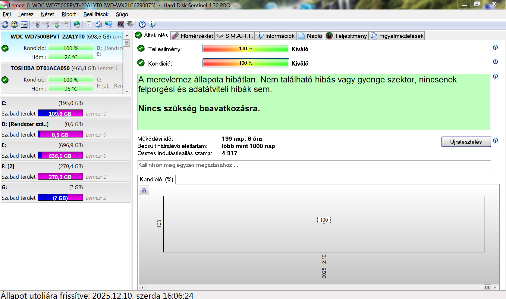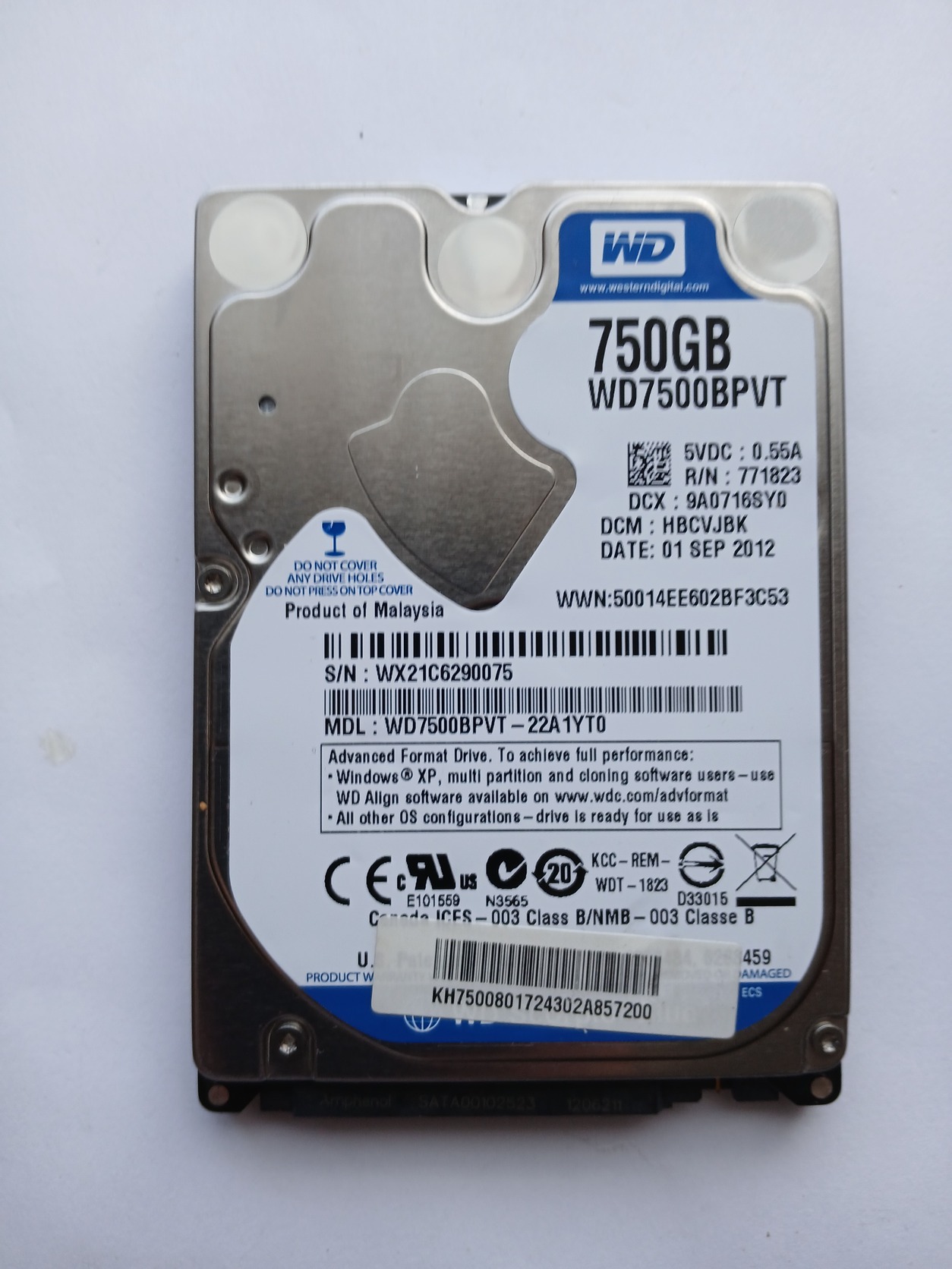 WDC WD7500Bpvt-22A1Yt0 750Gb 100% 199nap 8.000Ft