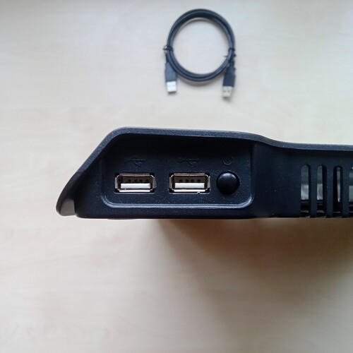 Kinyitható talpakkal, 2db USB, Kék LED fénnyel világít használatkor.