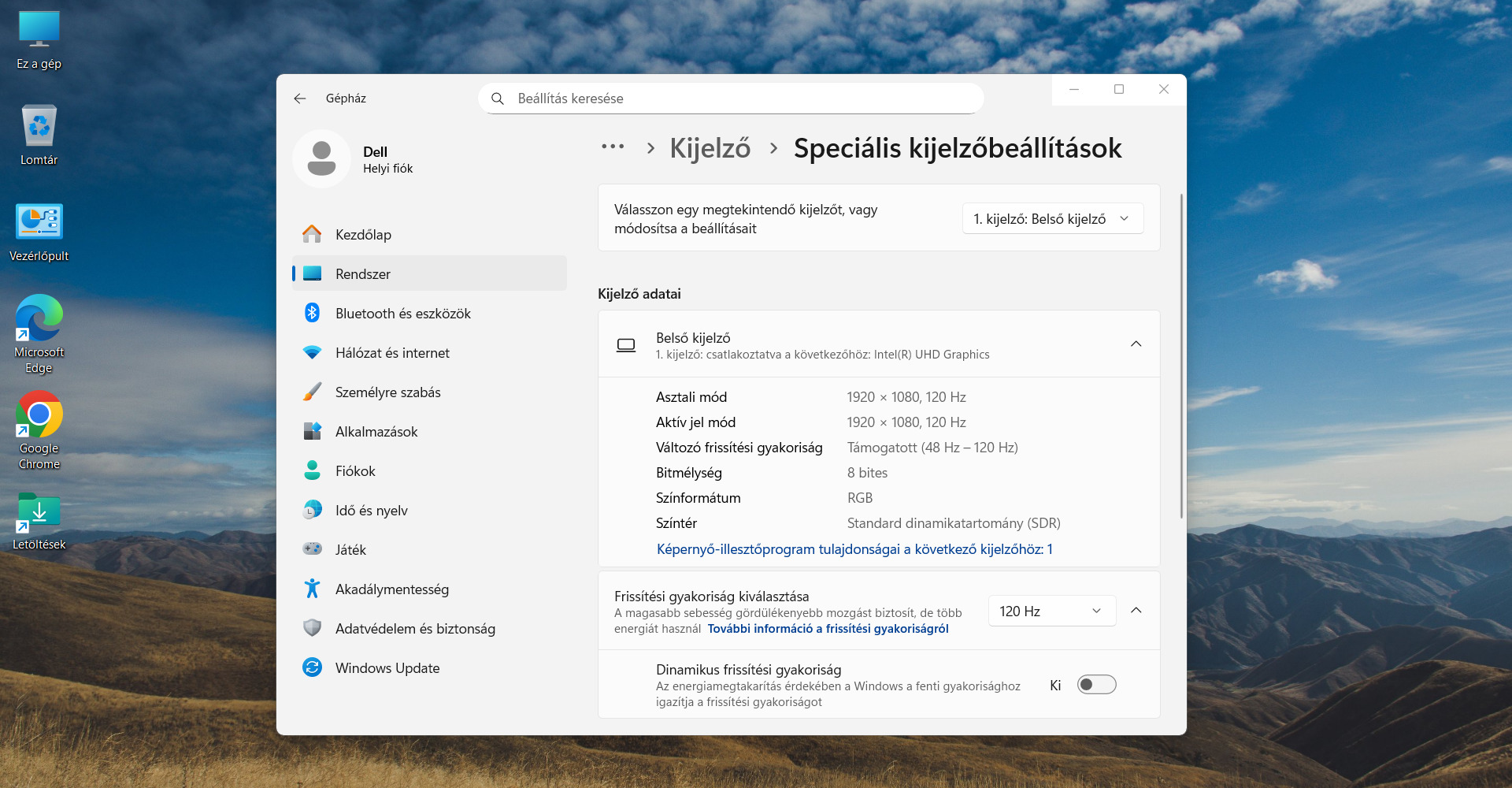- Operációs rendszer: Windows 11 Home