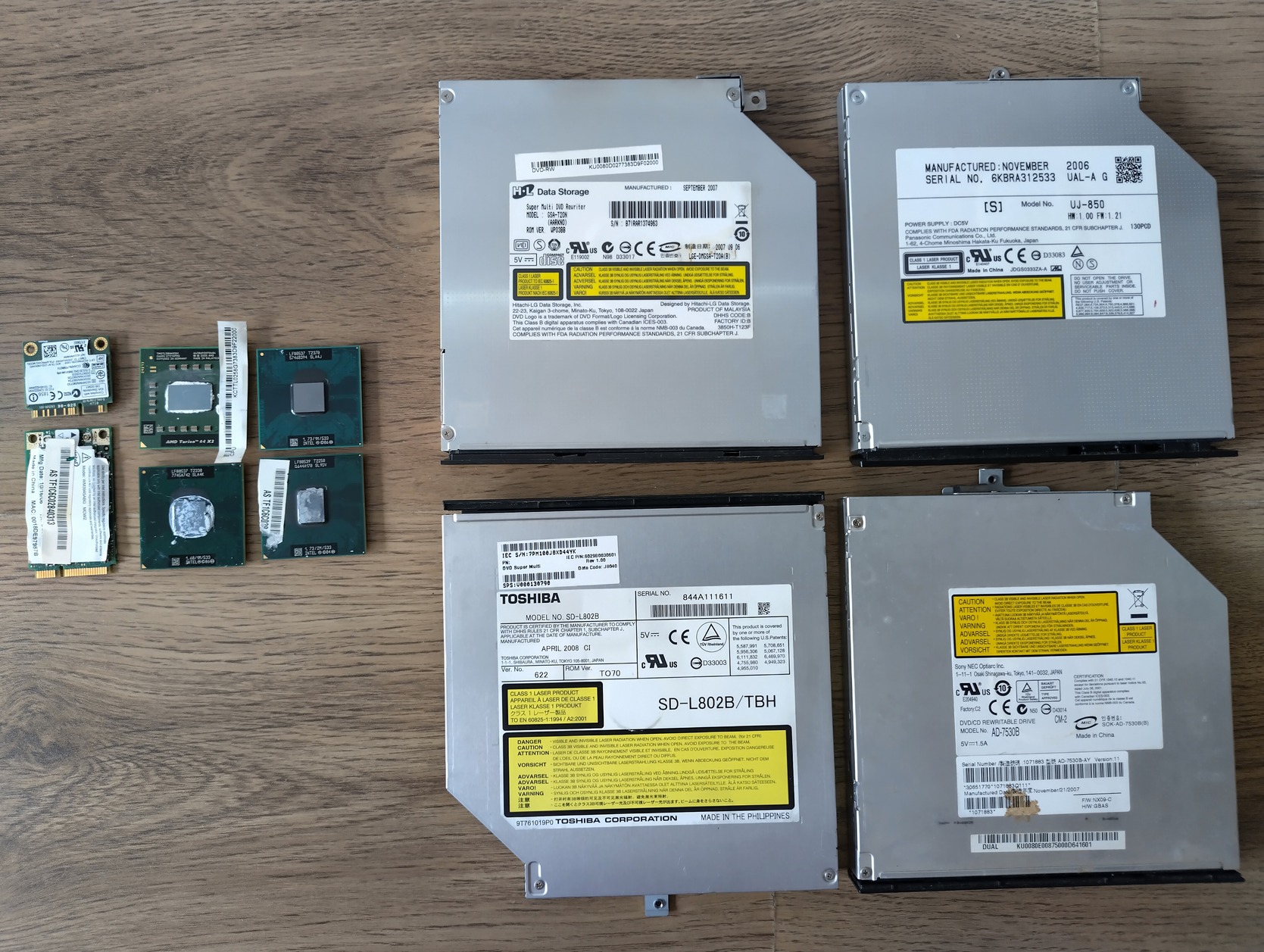 Laptop processzorok + DVD írók (régi IDE csatis) + wifi kártya