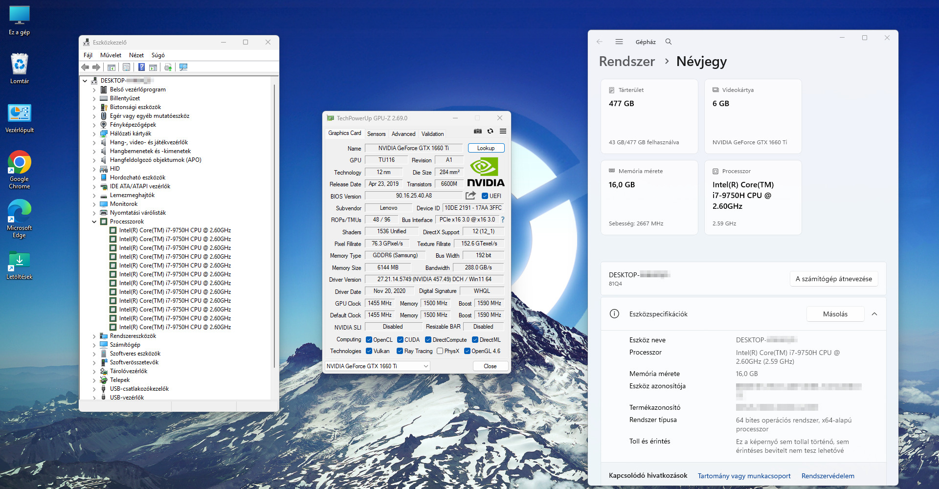 - Videókártya: NVIDIA® GeForce GTX™ 1660 Ti 6 GB GDDR6
