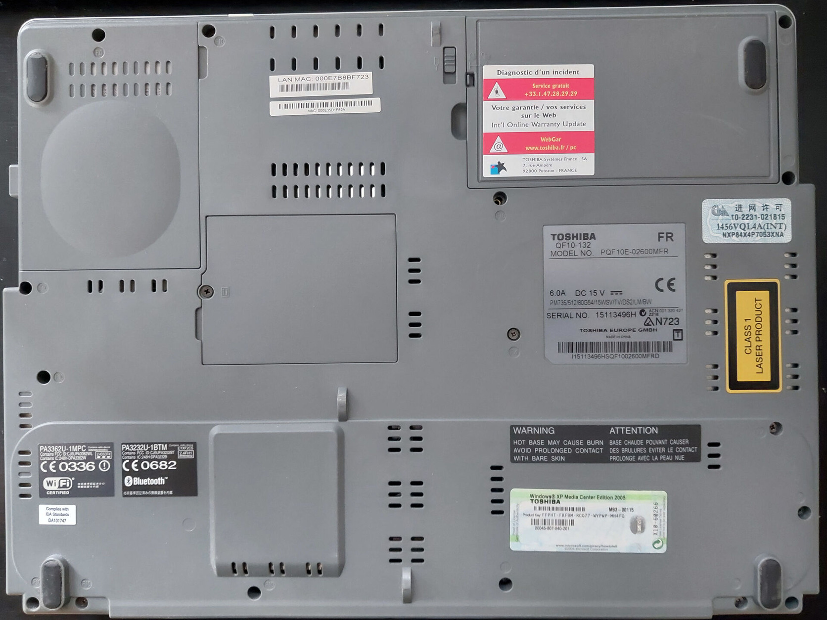 Laptop régi notebook Toshiba Qosmio F10-132 512 MB RAM 80 GB HDD Intel