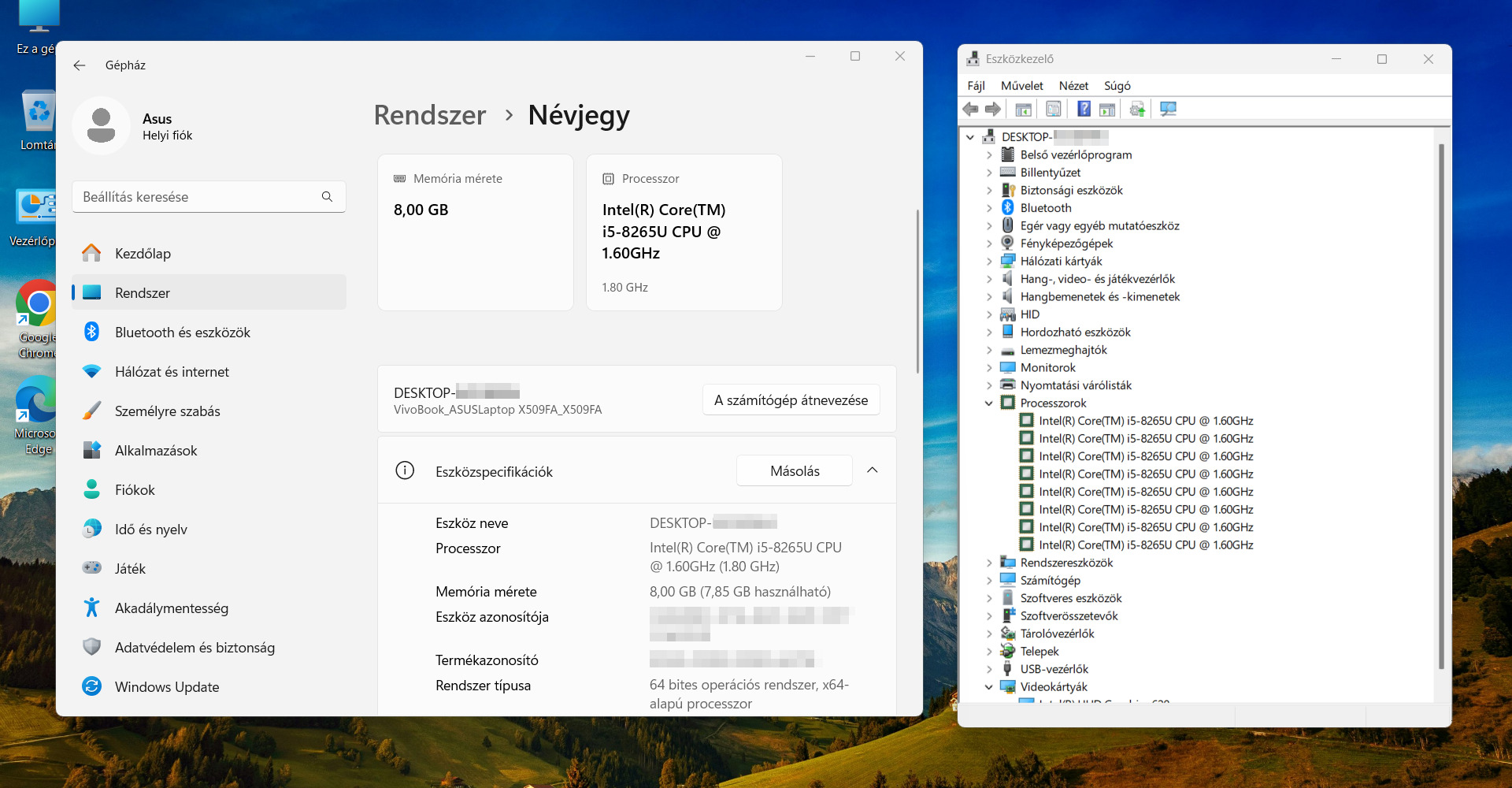 8 generációs Asus X509FA Intel Core i5-8250U Windows 11 négymagos laptop