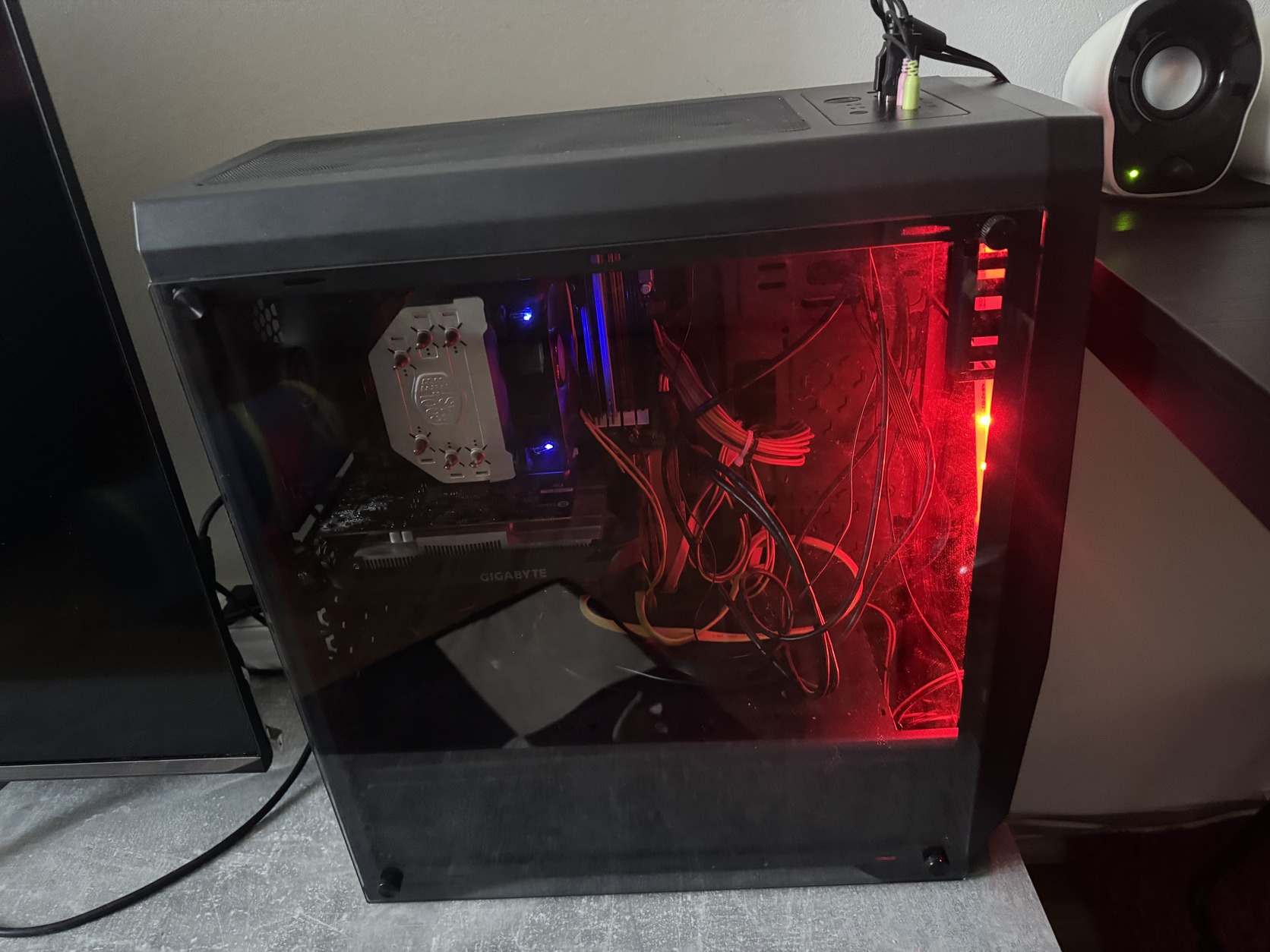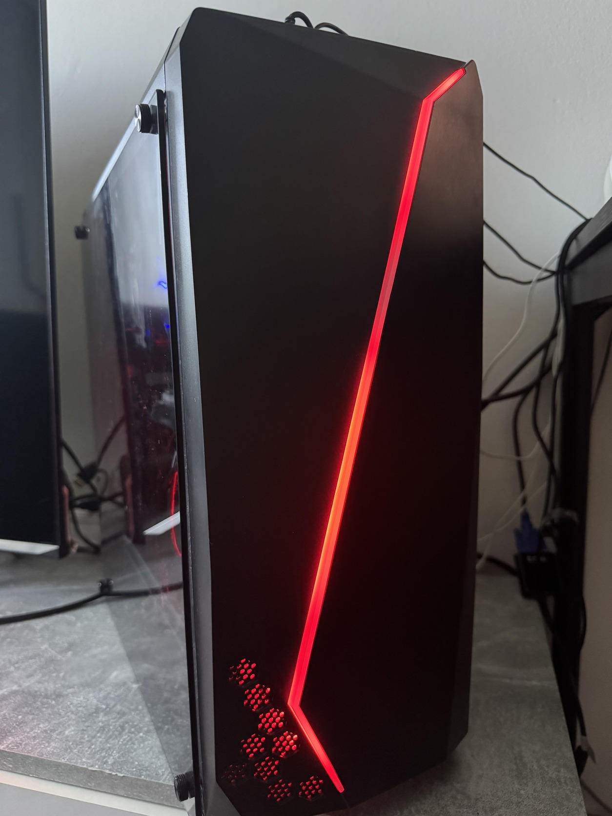 Fekete színű, üveg oldallapos kivitel, RGB előlapi világítással. ATX, Micro-ATX és Mini-ITX alaplapokkal kompatibilis. Normál állapotban van, működő előlapi világítással.