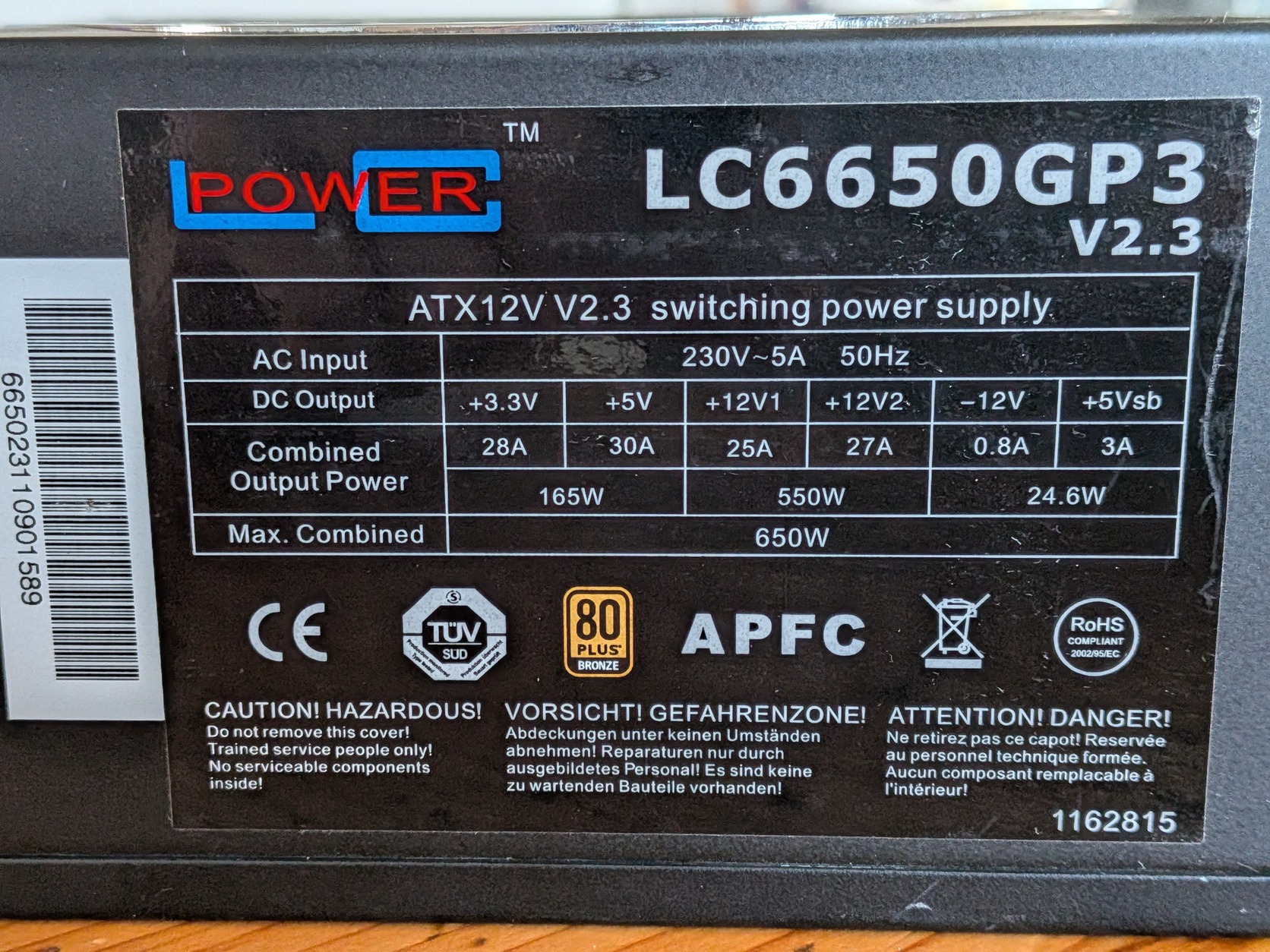 LCPower 650W ATX tép
