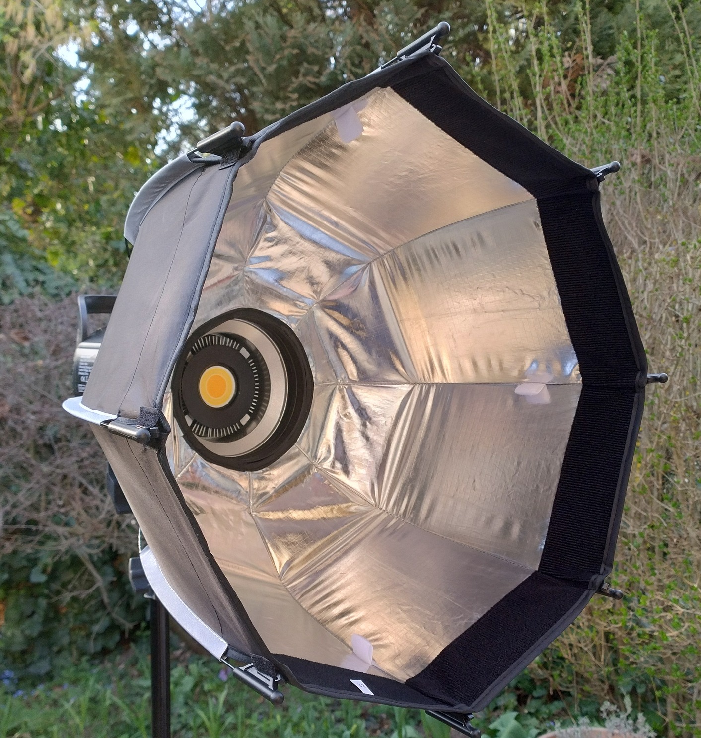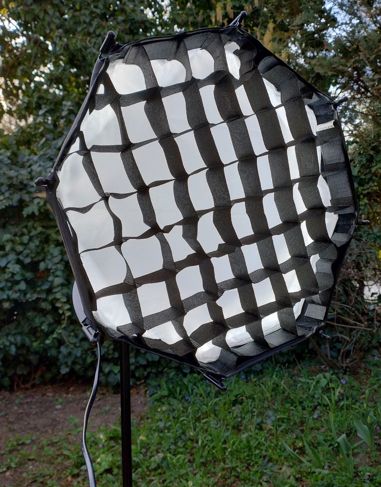 Új, 45 cm-es, dupla diffúzoros, méhsejtrácsos, gyorsan nyitható octobox-szal és állvánnyal (max. 190 cm magas).