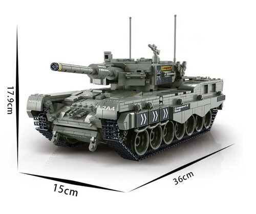 Nem eredeti LEGO, de vele kompatibilis 1756 db elemből összeépíthető Leopard 2A4 harckocsi modell. Forgó torony, élethű lánctalp, motor és küzdőtér imitáció.