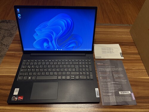 Eladó egy gyakorlatilag új Lenovo V15 G4 AMN 82YU00GWGE tipusú notebook hibátlan, újszerű állapotban, dobozában, doksikkal, gyári töltővel.