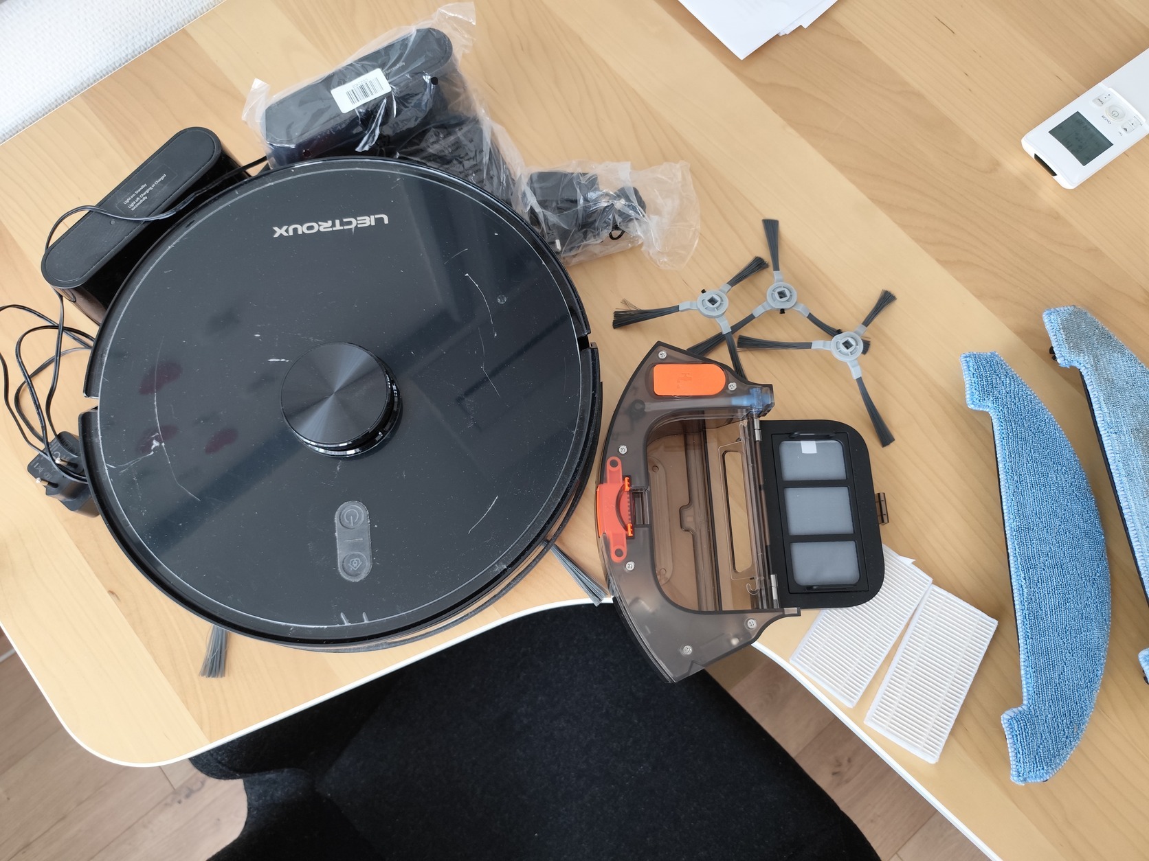 Rengeteg új szűrővel, seprűvel, két töltővel.
