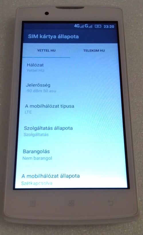 Eladó egy DUAL SIM-es kártyafüggetlen 4G-s Lenovo A2010 mobiltelefon, dobozában, szilikon tokkal, töltő nélkül.