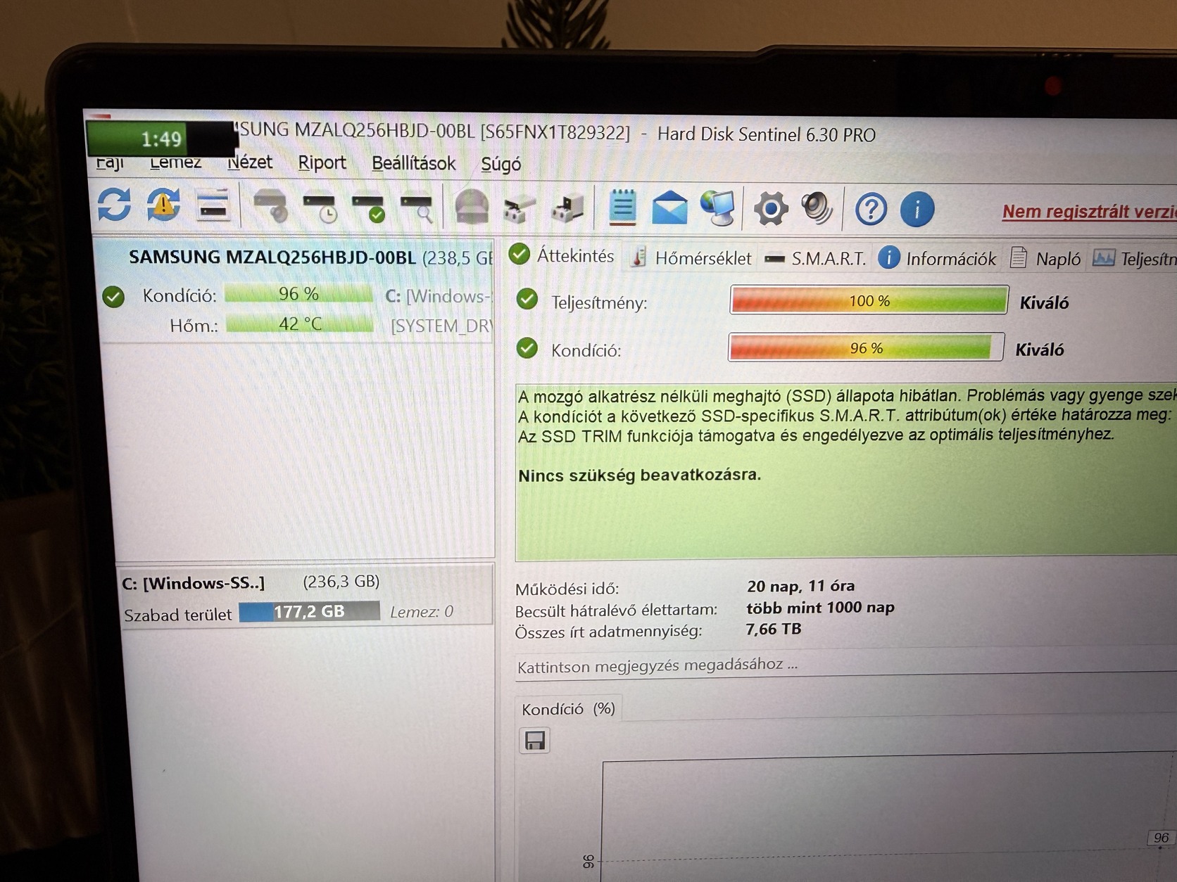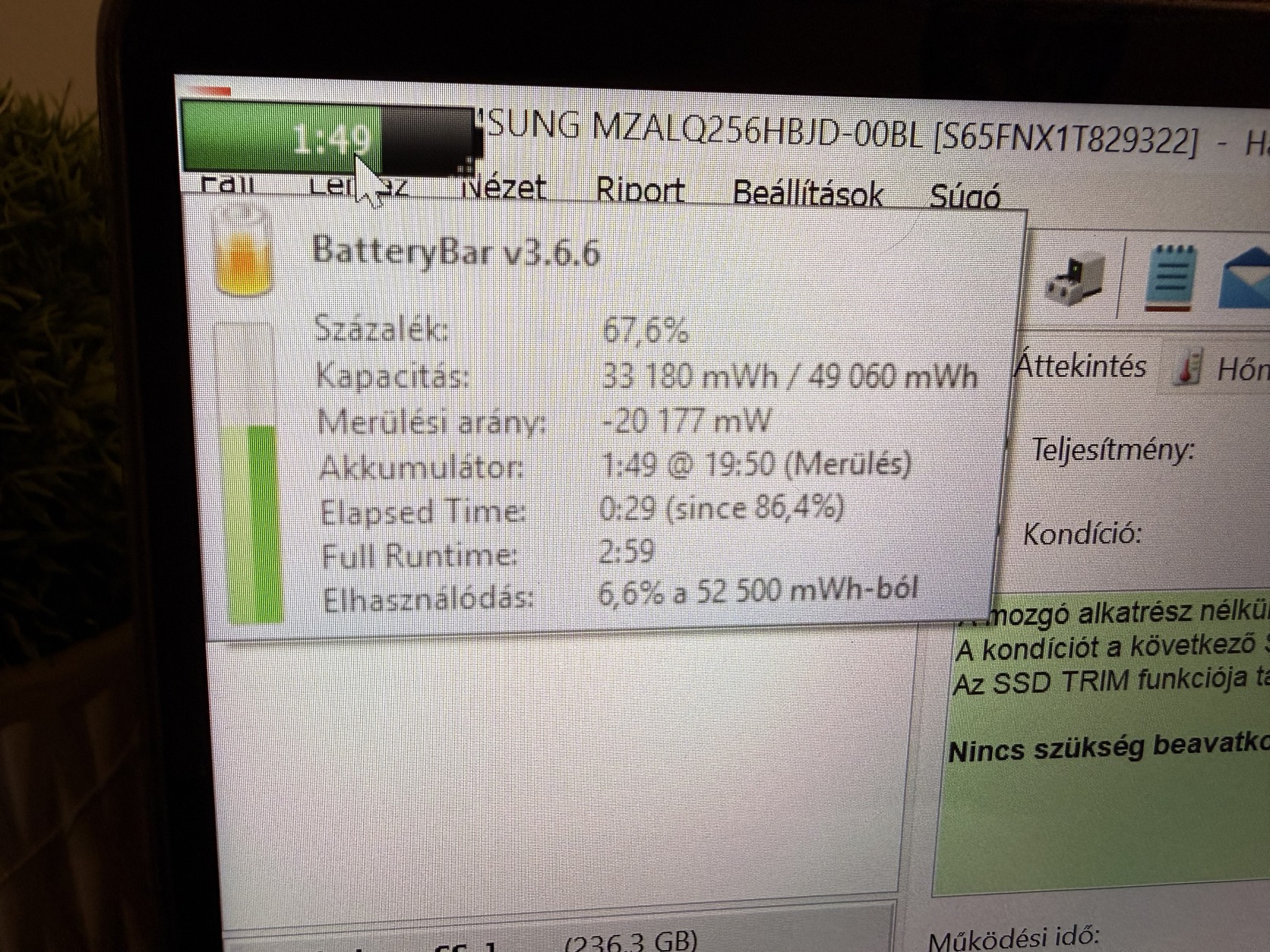 - 256 GB M.2 NVMe 2280 SSD meghajtó