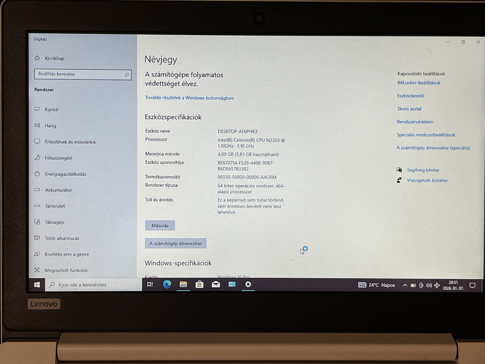 Grafikus vezérlő típusa Intel HD Graphics 500