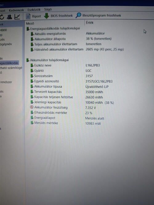 Akkuidő: 35000mWh akku elhasználódása 23%