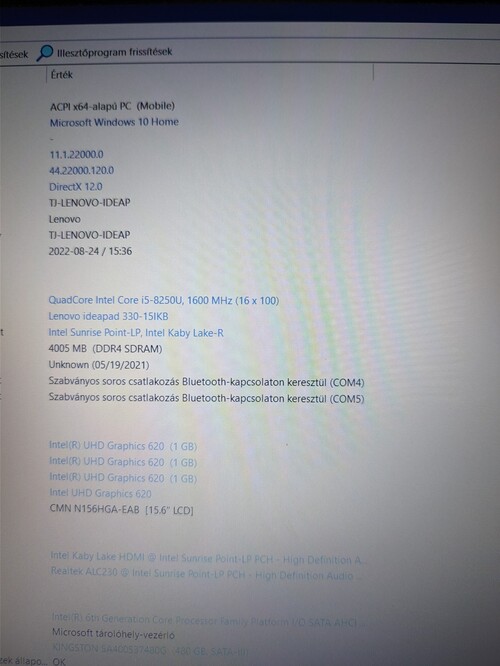 Processzor: Intel(R) Core(TM) i5-8250U CPU @ 1.60GHz 1.80 GHz