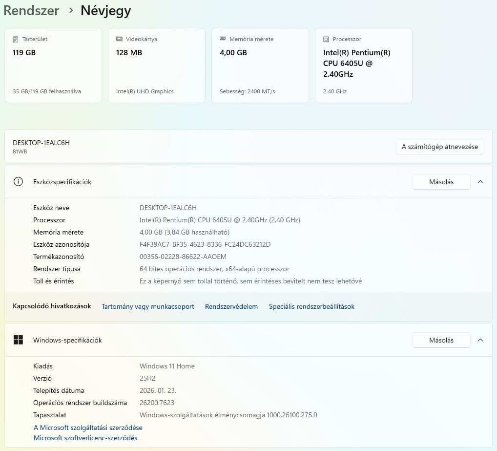 - Intel Pentium 6405U processzor