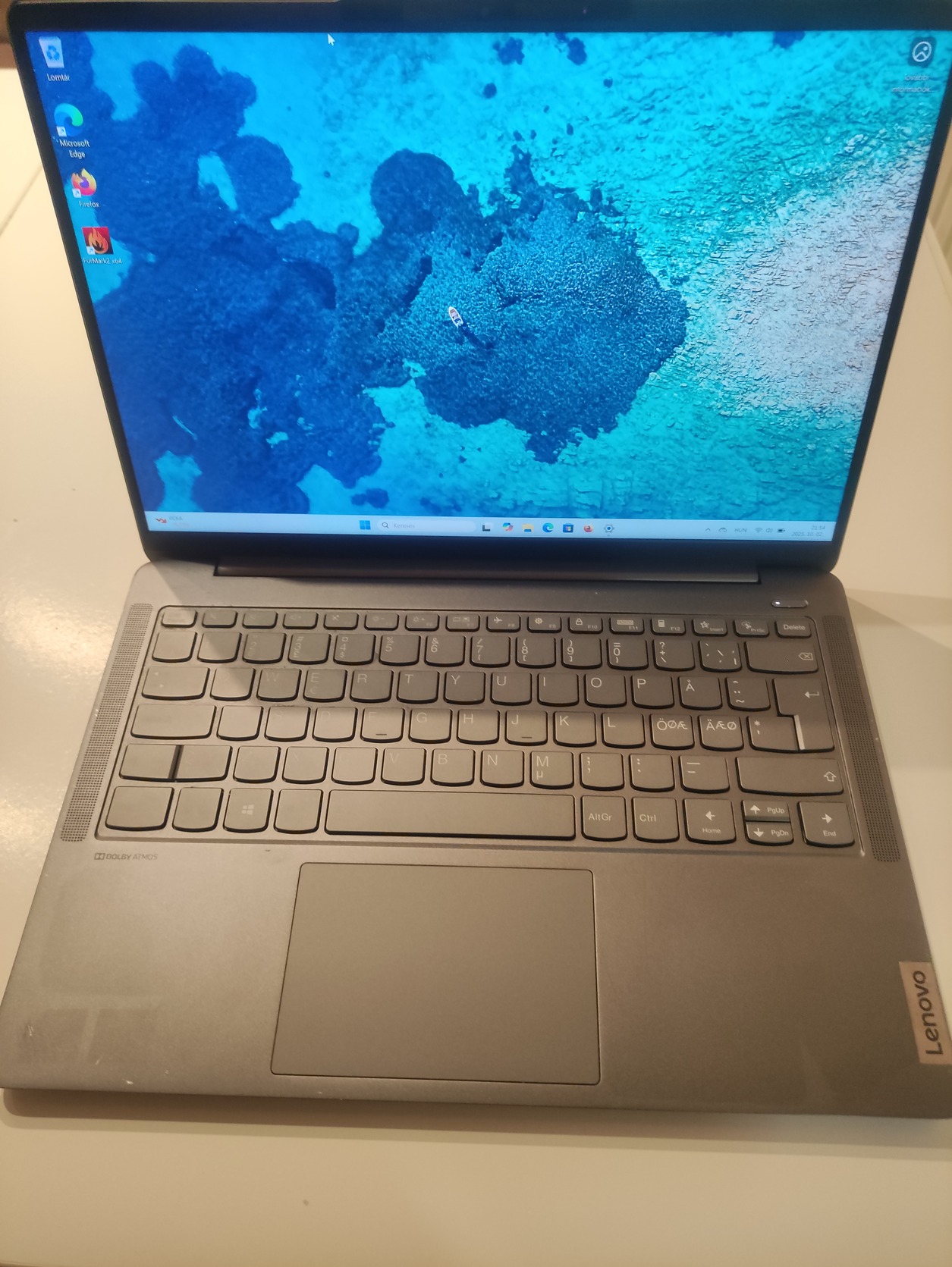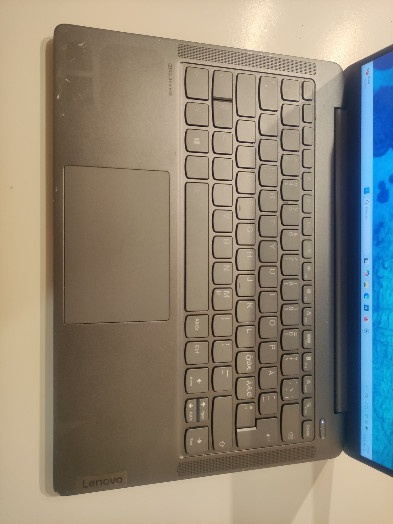 Gyors, hibátlanul működő fémházas laptop. Mivel használva volt, karcok vannak rajta. Illetve a kijelző jobb szélén van egy kis világos folt,ami fehér háttérnél látszik csak. Csináltam arról is képet