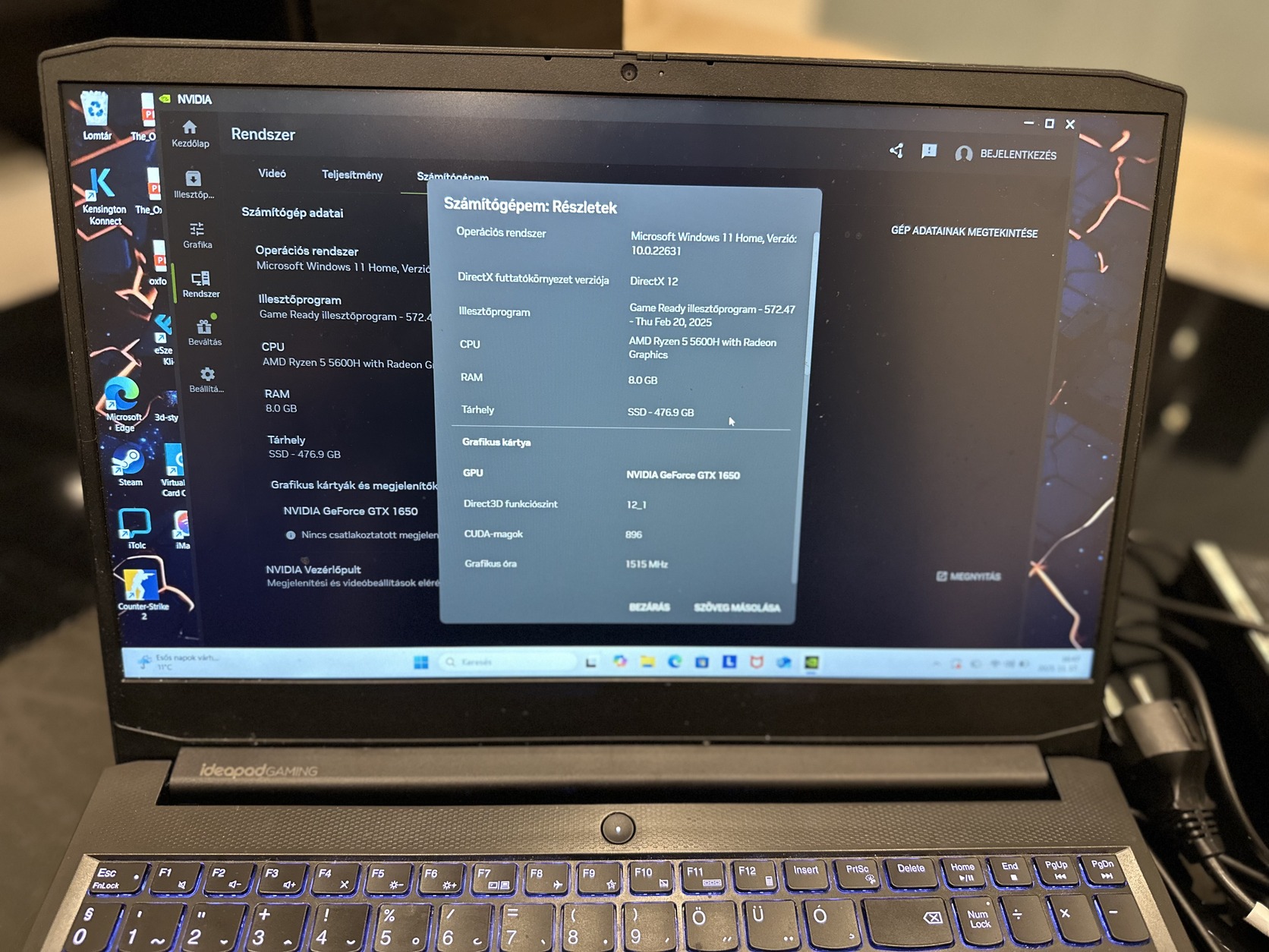 Még ma is minden játék elfut rajta gond nélkül. Nvidia GForce GTX 1650 / RAM 8GB / Ryzen 5600H / 512GB SSD / Windows 11