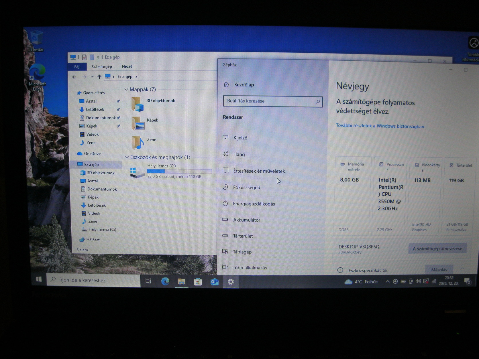 telepített és aktivált (BIOS-ból) win10 operációs rendszer