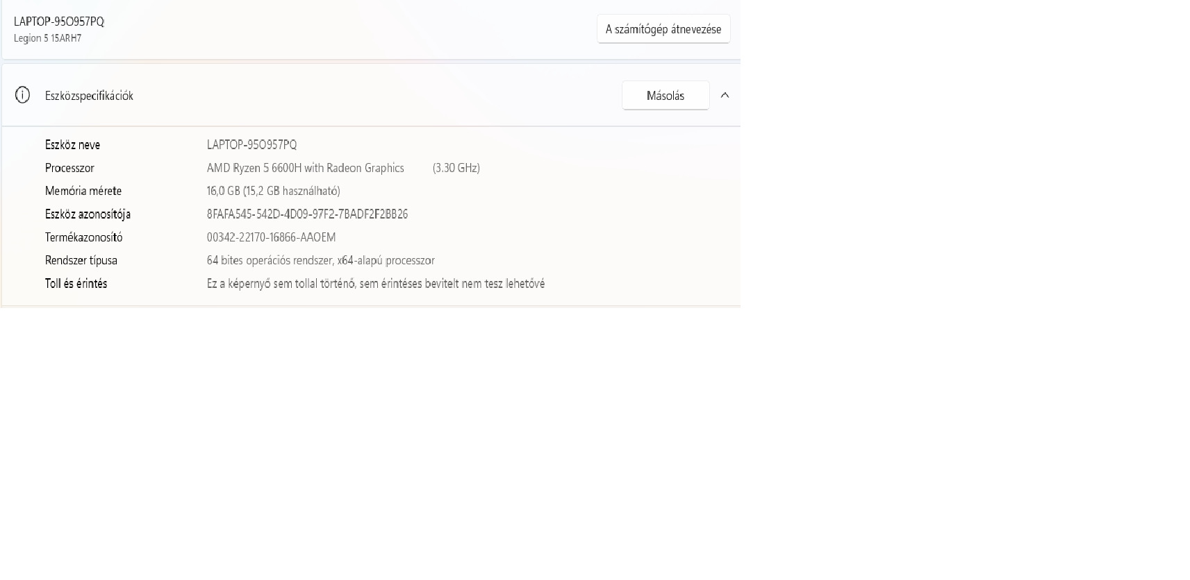 Lenovo Legion 5 15ARH7 | 15.6″ FHD IPS (100% sRGB, 300nit, 165 Hz) | Ryzen 5 6600H (12 v.mag) | NVIDIA GeForce RTX 3050 Ti (4GB GDDR6) | 16GB DDR5 | 512GB NVMe SSD (PCIe 4.0) | magyar világítós billentyűzet!