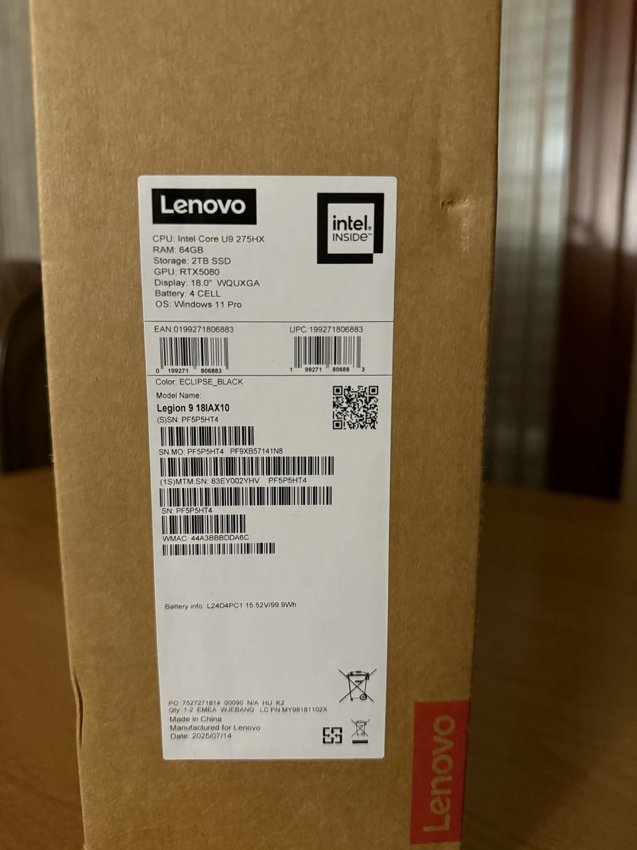 Jegelve – Lenovo Legion 9 18IAX10 Intel Core Ultra 9 275HX/RTX 5080/64GB RAM/2TB SSD eladó BONTATLAN!!!!!!