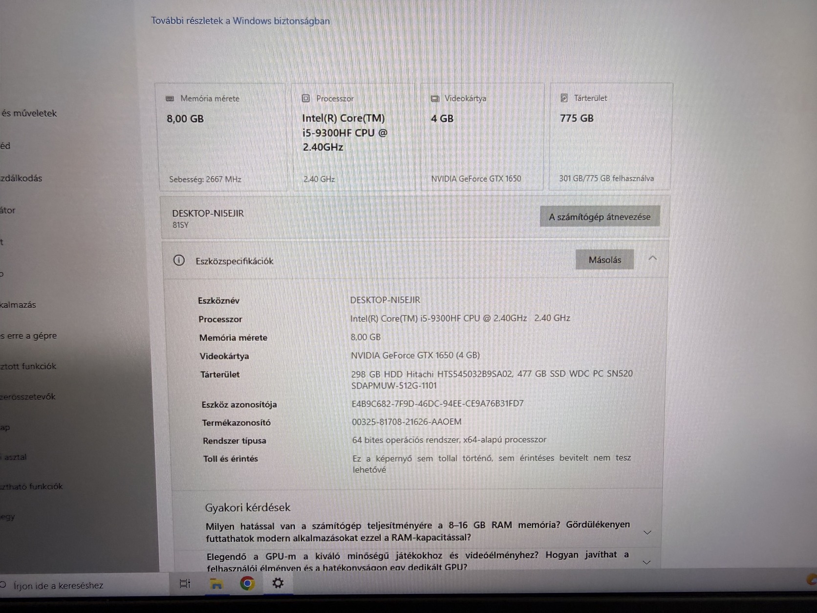 I5 9300HF processzor