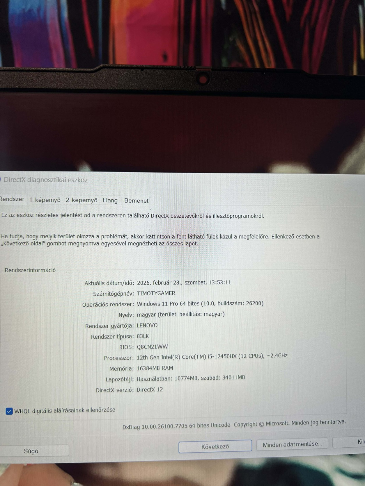 Processzor típusa: Intel Core i5 12450HX
