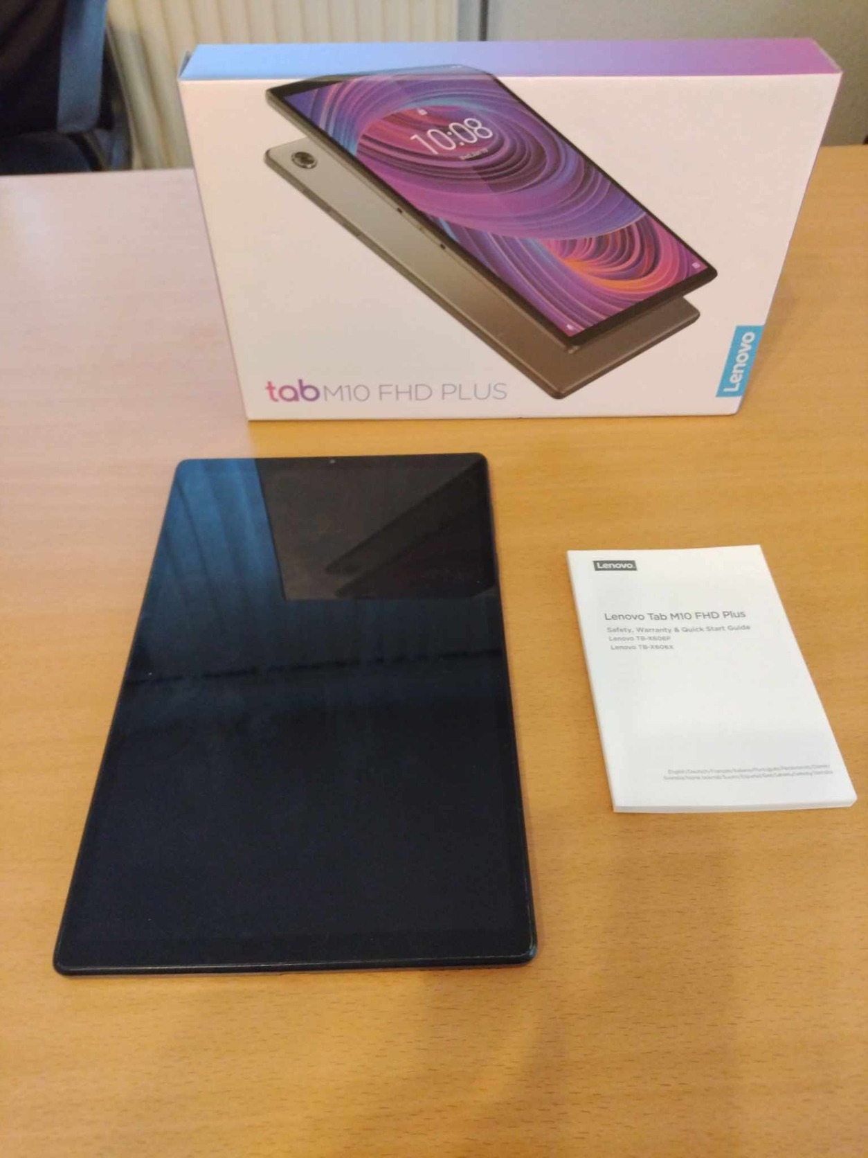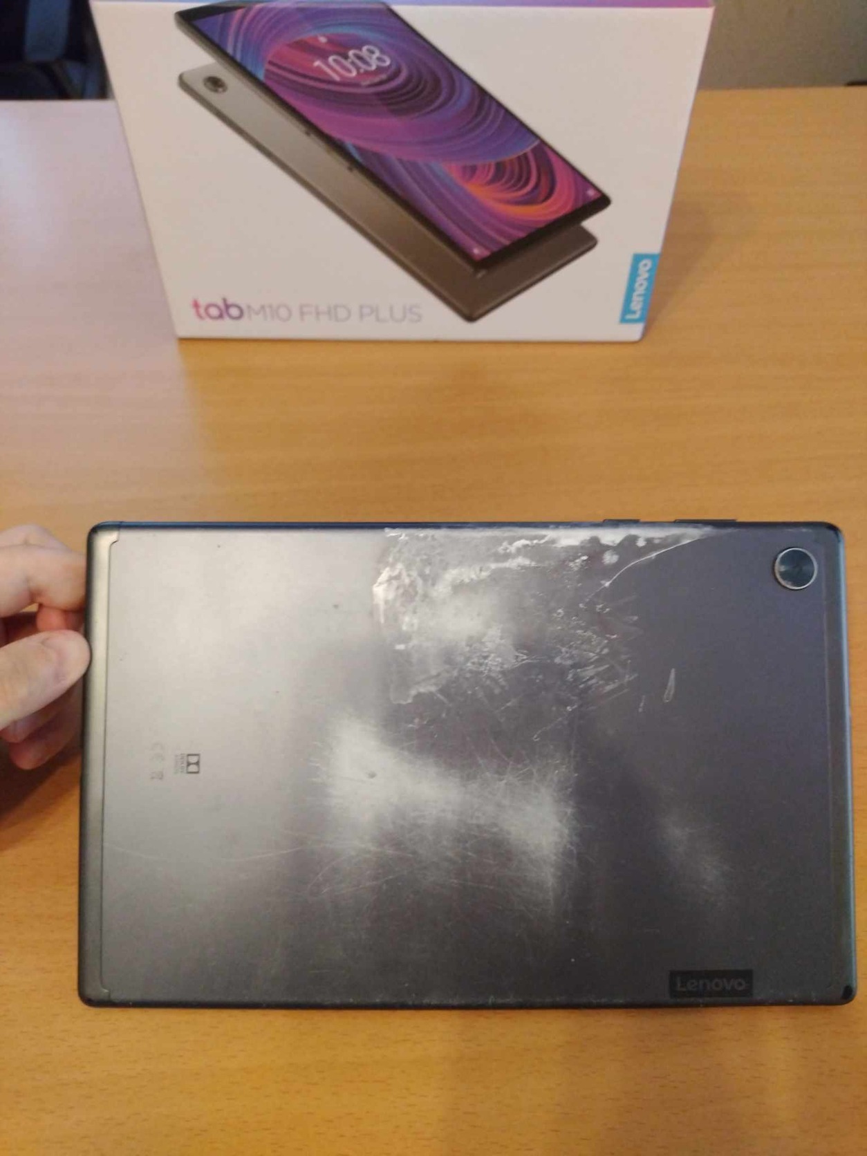 Android 10.61"-os Lenovo M10 plus full HD-s tablet, 2021 nyarán vásároltam egy németországi Media Markt-ban, eredeti dobozával. A hátulja eléggé karcos, ami csupán esztétikai hiba.