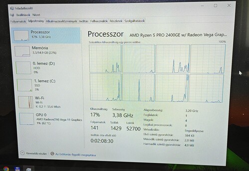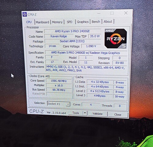 AMD Ryzen 5 Pro 2400GE APU (4 mag, 8 szál, 3.8Ghz)