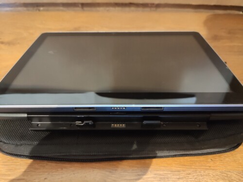 A tablet tökéletes állapotban van egy hibát kivéve, hogy a dokkoló/billentyűzet egyik reteszének a burkolata eltört (ahogy a képen látszik) de ettől függetlenül tartja a tabletet.
