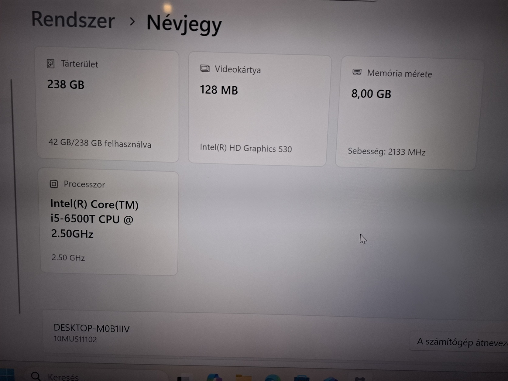 Eladó Lenovo Thinkcentre M910q mini pc, processzor: Intel(R) Core(TM) I5-6500T CPU @ 2,50 GHz, memória: 8GB, tárterület: 238GB, Win 11 van rajta, új tápegységgel.