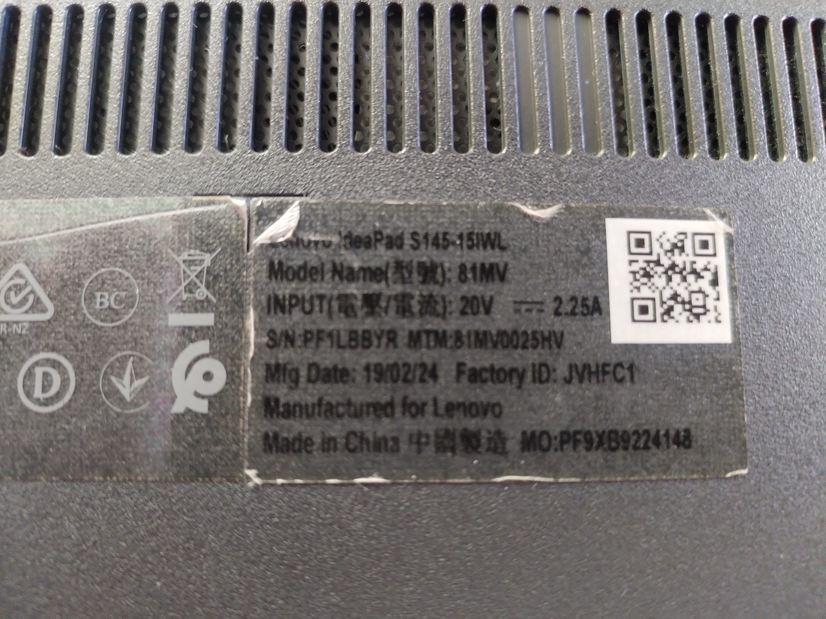 Lenovo S145 I15W zsanér hibàval.
