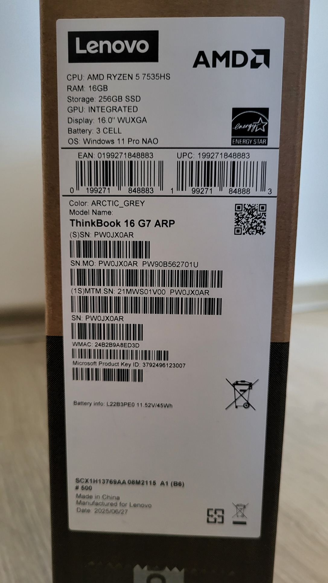 Modell: Lenovo ThinkBook 16 G7 ARP