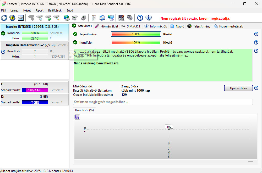 Meghajtó: 256GB SSD 100/100%