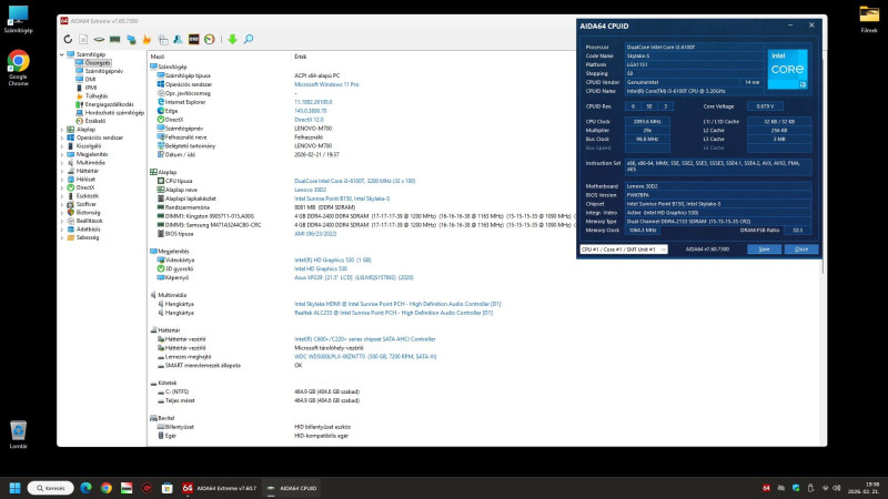 - Intel I3 6100T processzor