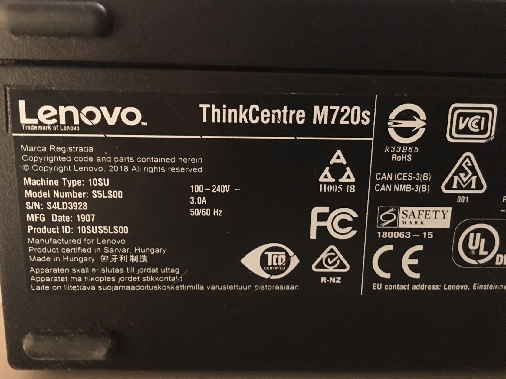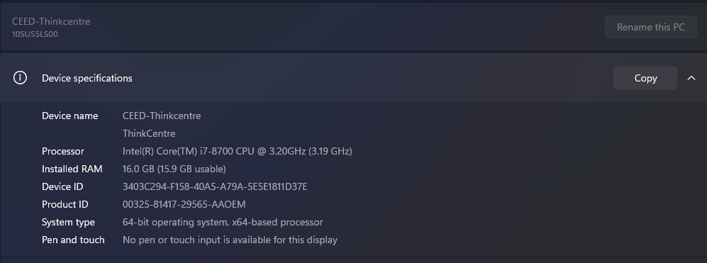 LENOVO ThinkCentre M720s SFF, i7-8700 CPU, 16GB DDR4 RAM (2x8GB), 256 GB M.2 NVME SSD