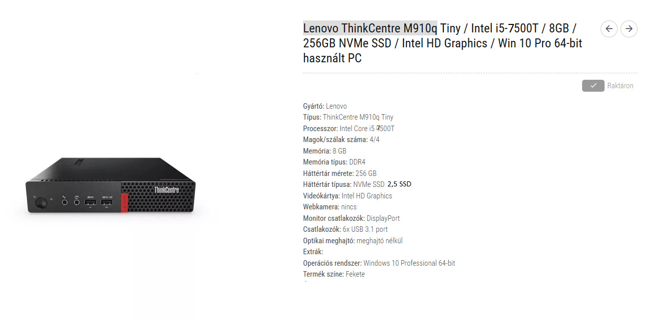 Típus: ThinkCentre M910q Tiny