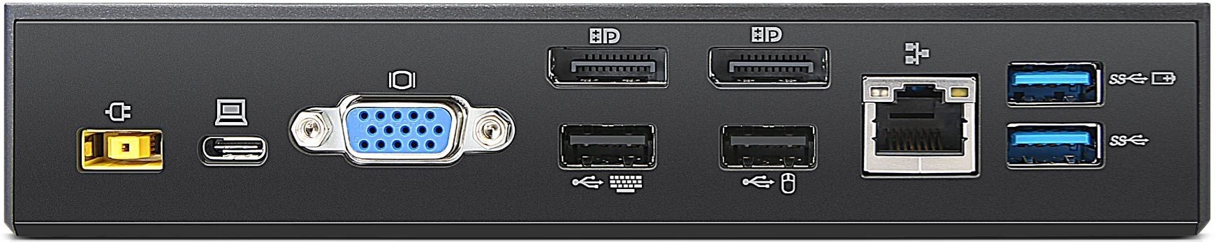 Csatlakozások: 3db USB 3.0 (ebből 1db biztosít always-on mobil töltést), 2db USB 2.0, 1db USB-C (adatátvitel), 10/1000 Gigabit Ethernet, 2db DisplayPort, 1db VGA, Stereo/Mic Combo Audio Port