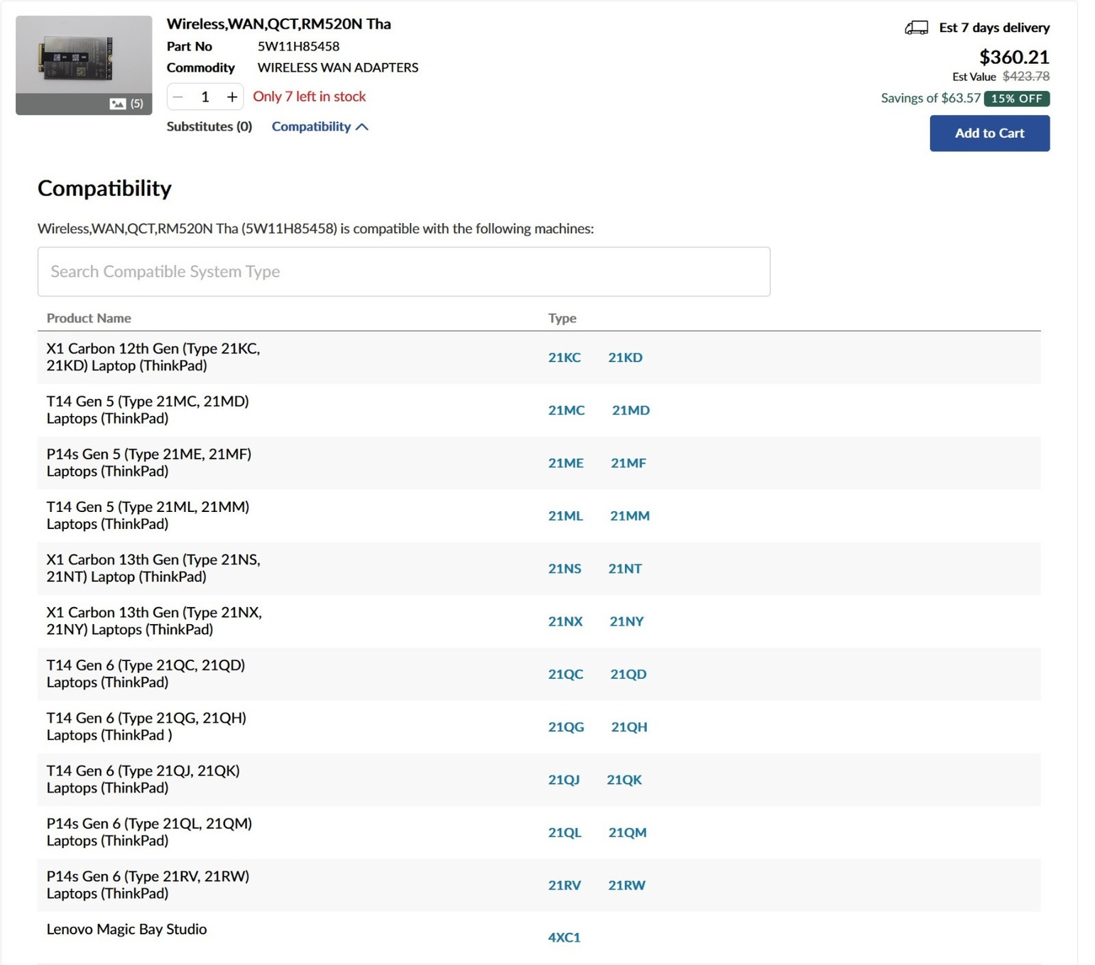 Lenovo Thinkpad 5G LTE modem Quectel RM520N-GL 5W11H85458