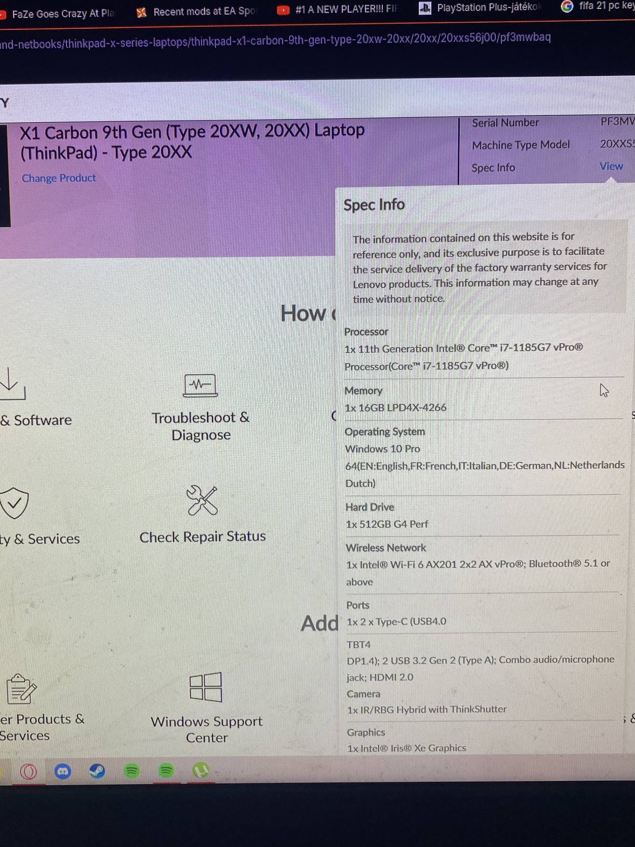 Lenovo Thinkpad Carbon gen 8 –