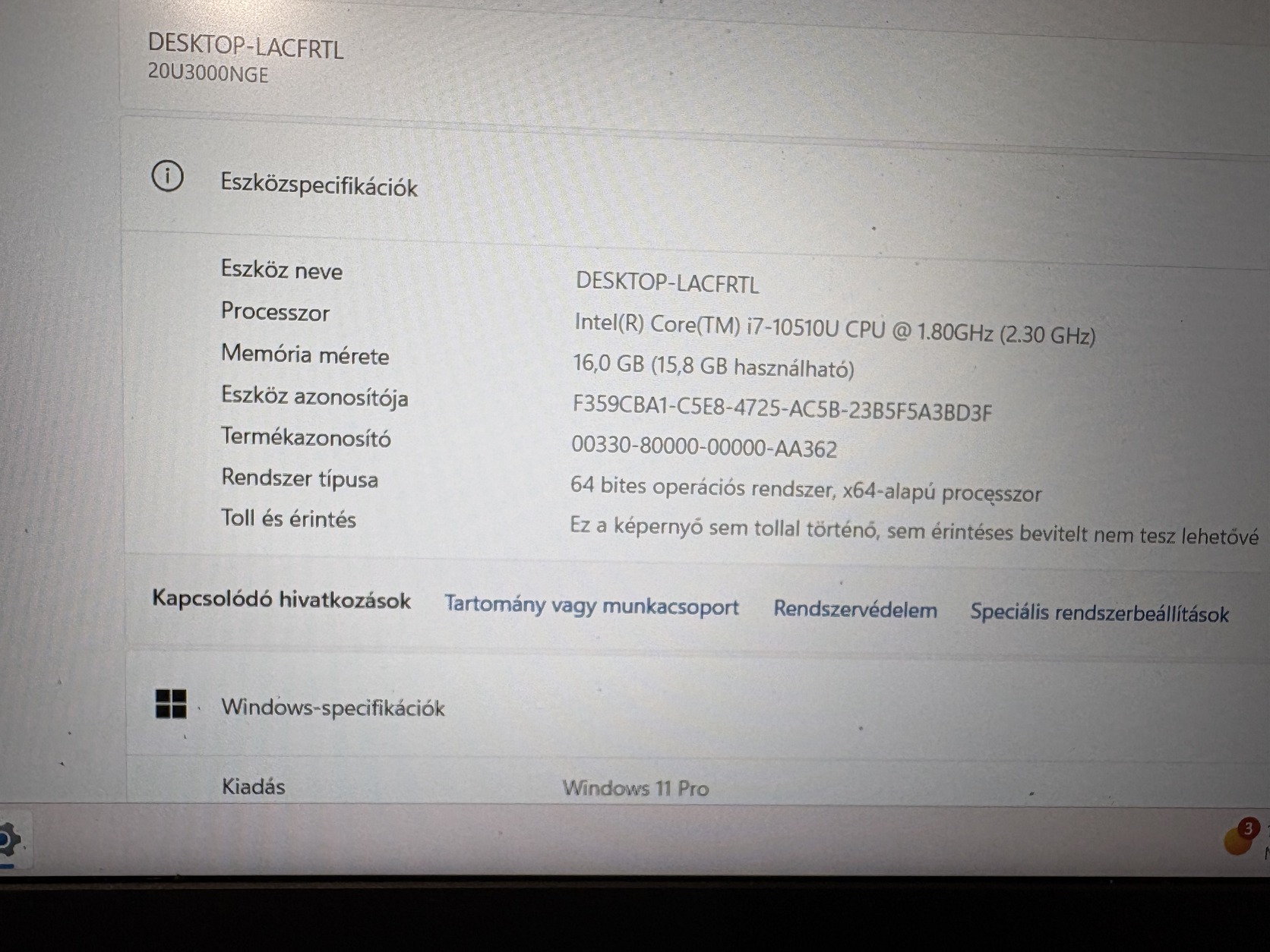 Processzor: Intel Core i7-10510U (10. generáció)