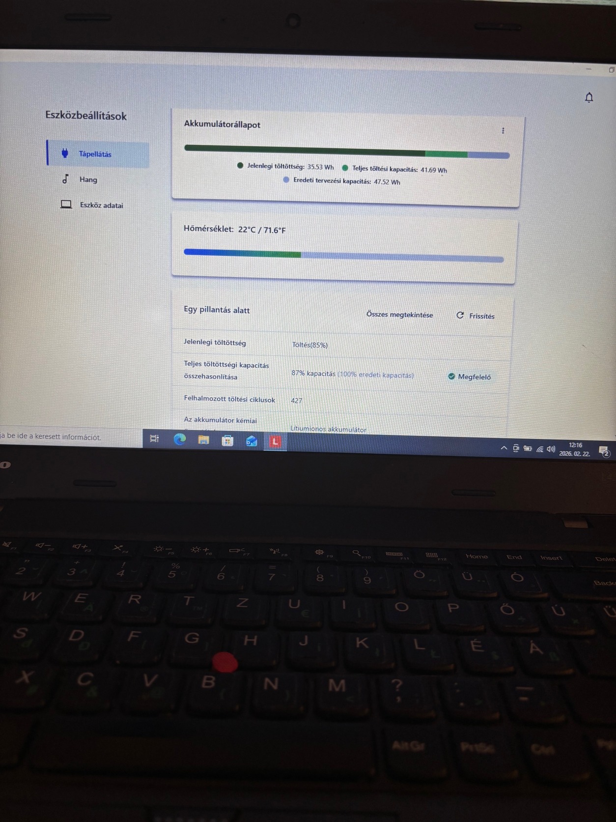 A gép megfelelő állapotban van, néhány karc a burkolaton, és halvány foltok az LCD-n, ami szintem nem is látszanak, a használatot nem befolyásolják. Tehát kifogástalanul működik, de nem makulátlan az állapotba.