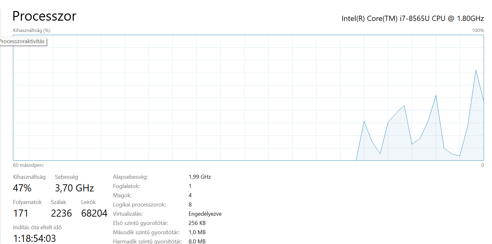 CPU: Intel Core i7-8565U 1.80GHz 4/8 mag