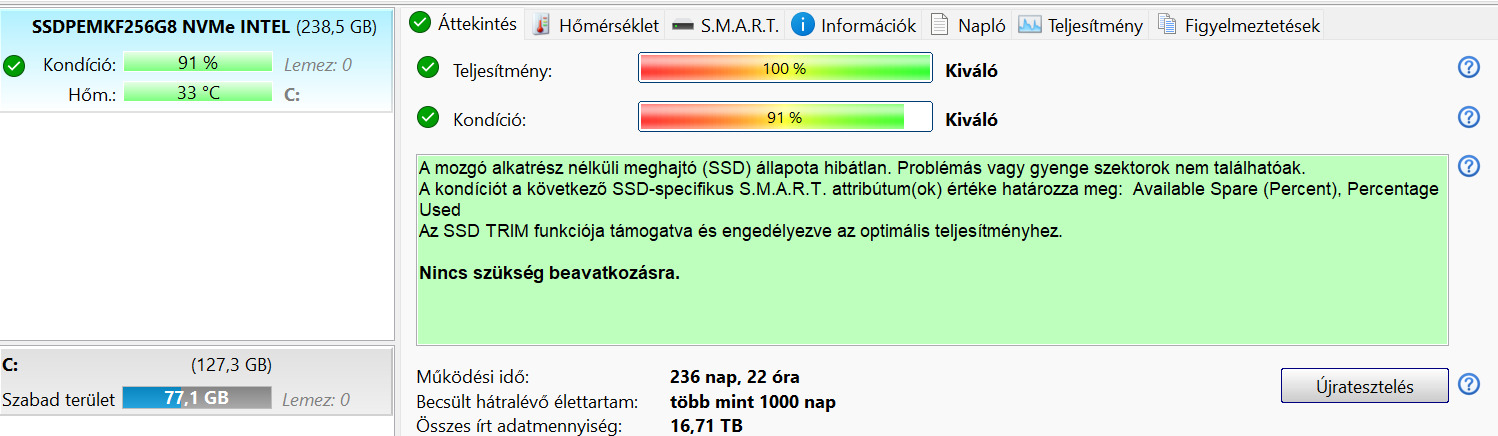 SSD: Intel NVMe 256GB 100/91
