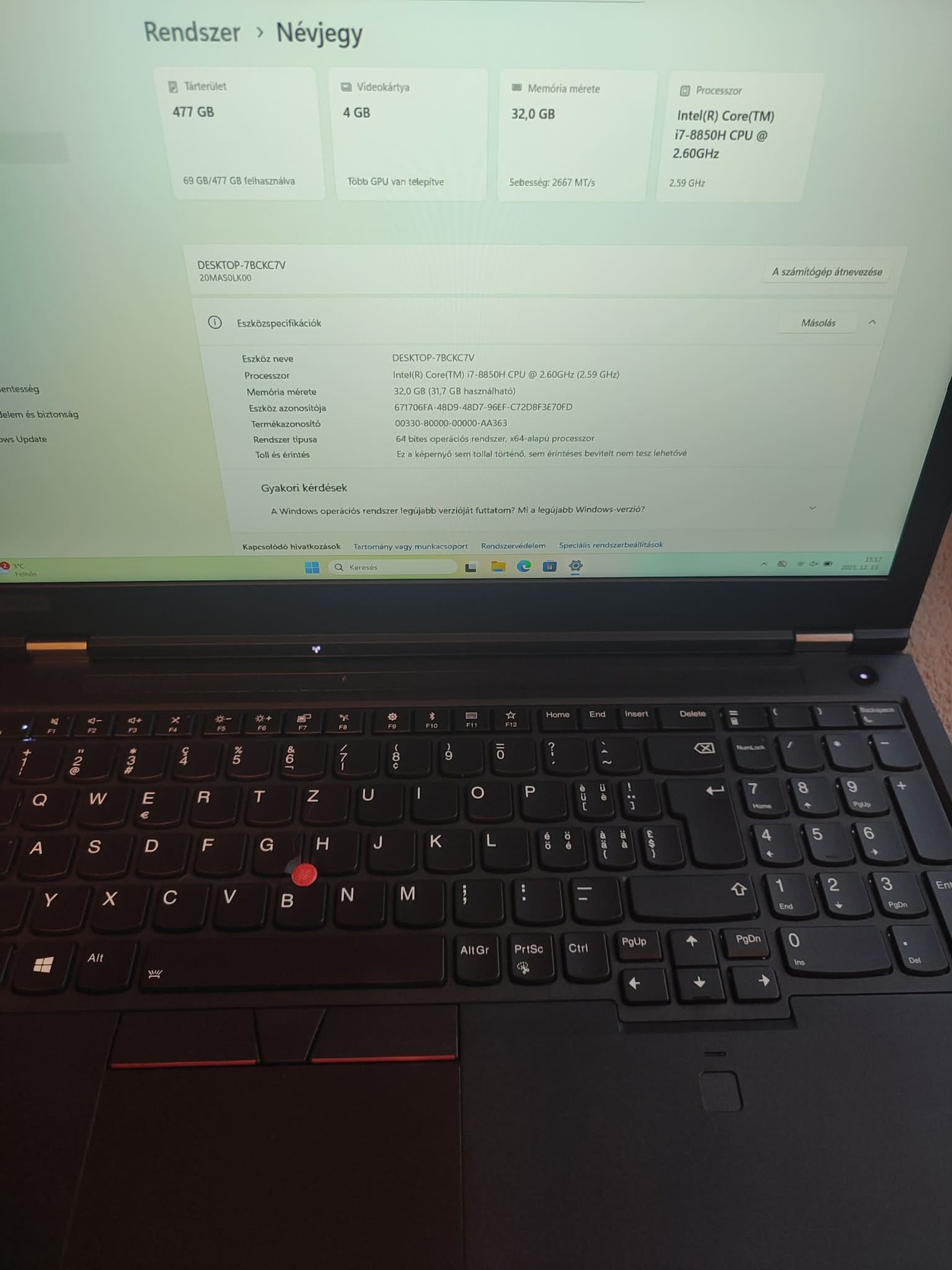 CPU: Intel Core i7-8850H (6 mag / 12 szál, max. 4.3 GHz)
