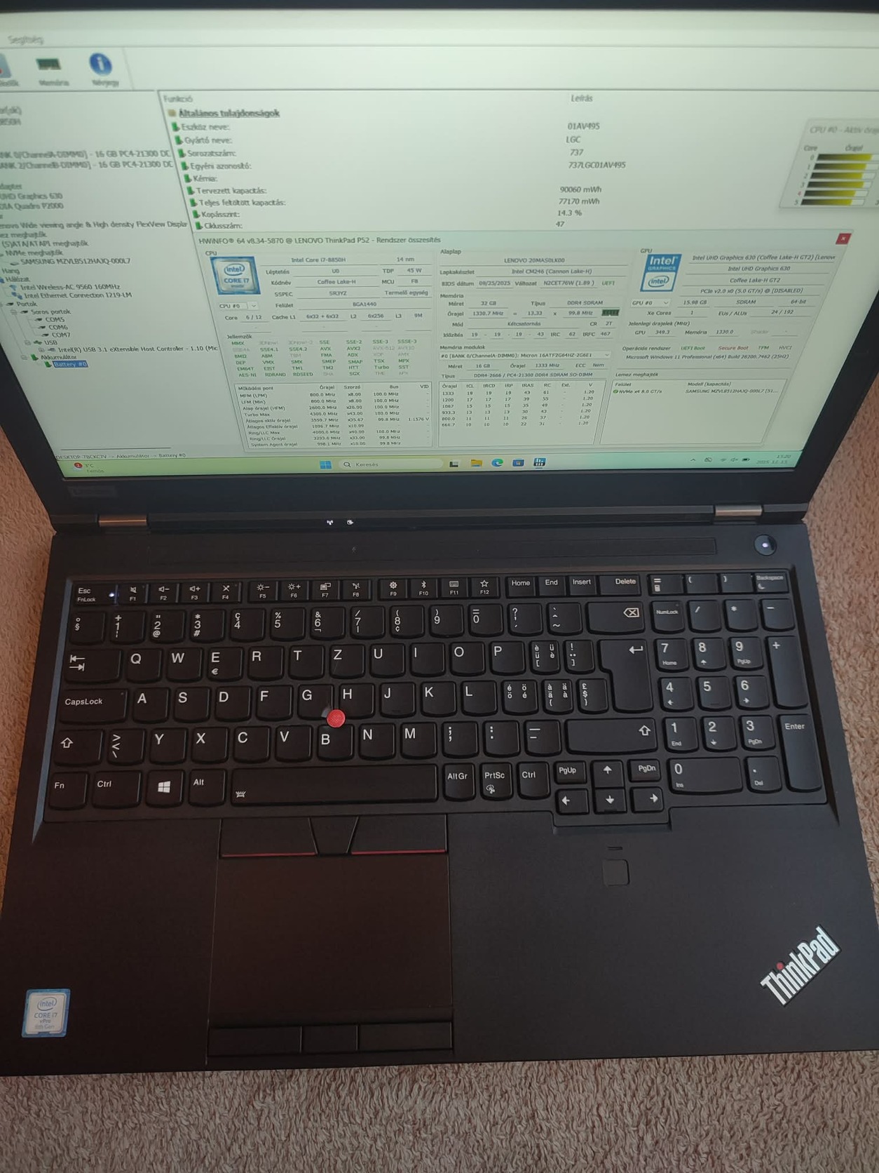 Eladó egy Lenovo ThinkPad P52 professzionális mobil munkaállomás, amely kiváló választás mérnöki, grafikai, CAD, 3D tervezési, programozási vagy videós munkára.