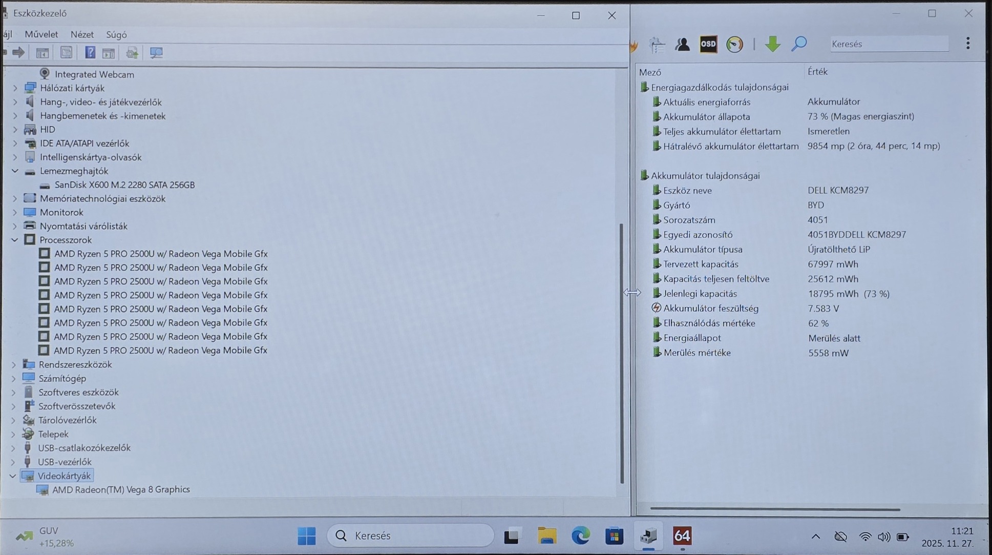 - Videokártya: AMD Radeon Vega 8 Graphics
