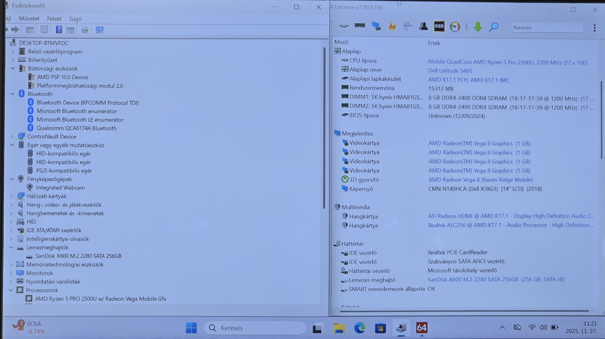 Értékcsökkent Dell Latitude 5495, 14" FHD IPS kijelző, AMD Ryzen 5 Pro 2500U CPU, 16GB DDR4, 256GB SSD, W11, Magyar bill, Számla, 1 év garancia ( olvasd végig )