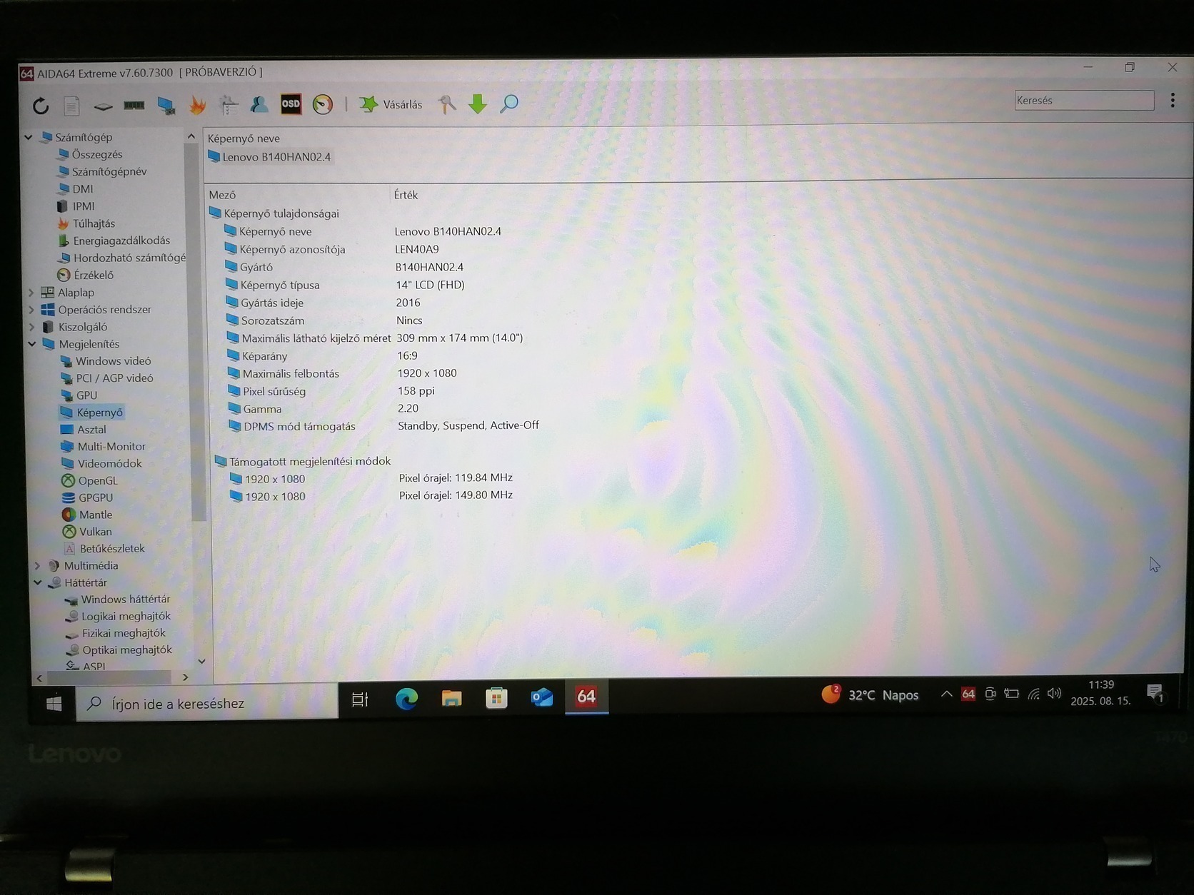 Kijelző fedlappal: FHD IPS kompletten, bal alsó tájon kissé foltos, karc- és pixelhibamentes - 5 000 Ft
