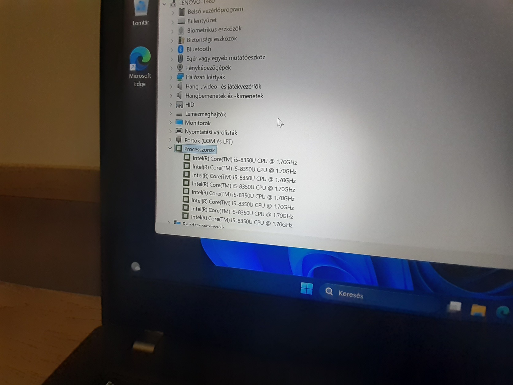 -Processzor: Intel Core i5-8350U (8. generáció)